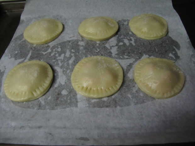 2. Colocar las cortezas superior encima de las mini empanadas en la bandeja