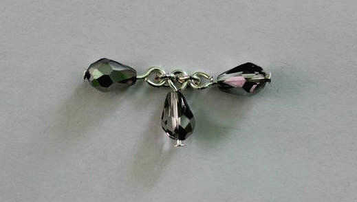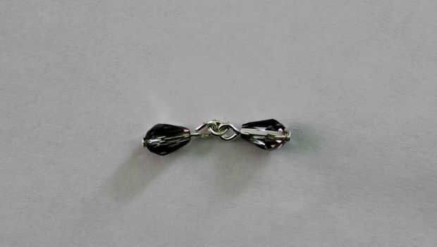 Con el alambre sobrante de los pernos de la cabeza, forma dos pequeños lazos alrededor de sus alicates de punta. Coloque el primer lazo a dos de los granos. Fije el segundo bucle al tercer grano y otro grano, para que tengas las cuentas de tres conectadas por los dos lazos.