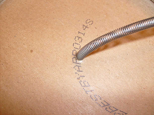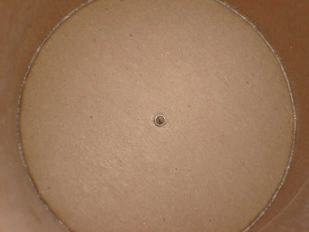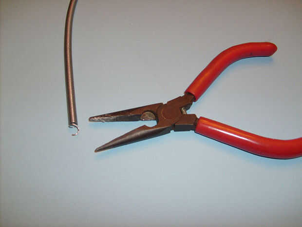 Cuidadosamente con la punta del lápiz, meter un pequeño agujero en el centro de la parte inferior del envase de harina de avena. Cuidadosamente Introduzca un extremo del resorte ahora corte (aprox. longitud 16,5") y comenzar a enrollar cuidadosamente como la primavera tarda espera sobre el fondo del envase de harina de avena. Si tiene dificultad, levantar temporalmente al final de la primavera con un palillo o similar hasta lograr enrósquela en la bodega y la bobina. Aunque los experimentos iniciales implicados utilizando alicates de punta para doblar permanentemente uno de los extremos del muelle para permitir mejor roscado en la base del contenedor, ya no recomiendo esto. El resorte debe tener como forma original como sea posible, que no sea la modificación que estira. Gire en sentido horario, hasta 3-4 vueltas del resorte están presentes en la parte inferior 's otro lado.