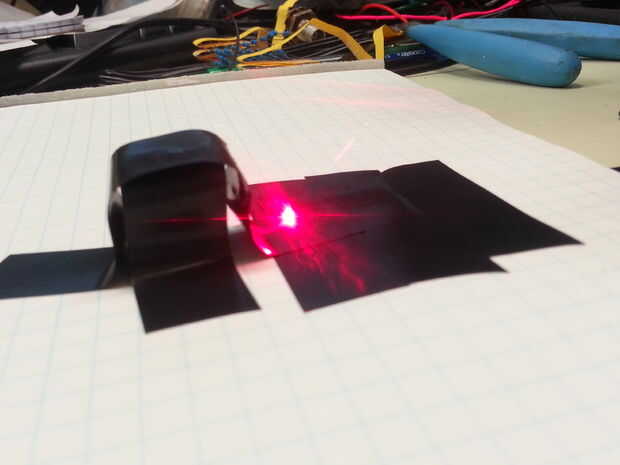 Tome las precauciones apropiadas y divertirse quemando algo oscuro (negro) en color, enfoque el rayo girando el la lente en el módulo, no se preocupe acerca de se quema el dedo a menos que sea en el punto focal (hasta entonces estoy claro para que no queme mi piel), esto no significa que tus ojos son más seguros, usted ha sido advertido.