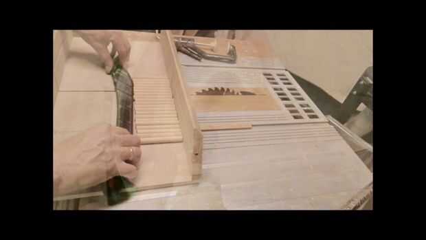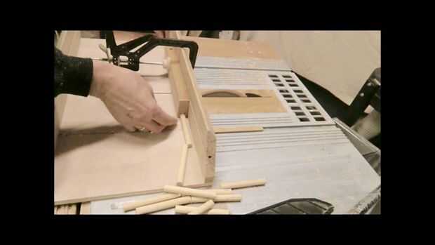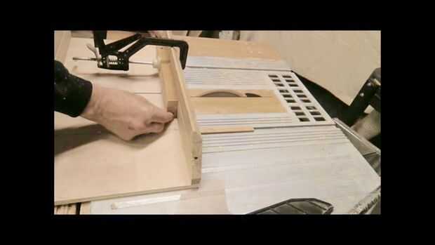 Utilizando un trineo fijar la plantilla a 4 pulgadas y había fijada en luego había levantado la hoja de sierra a la altura correcta aprox 1/2 sobre el trineo.