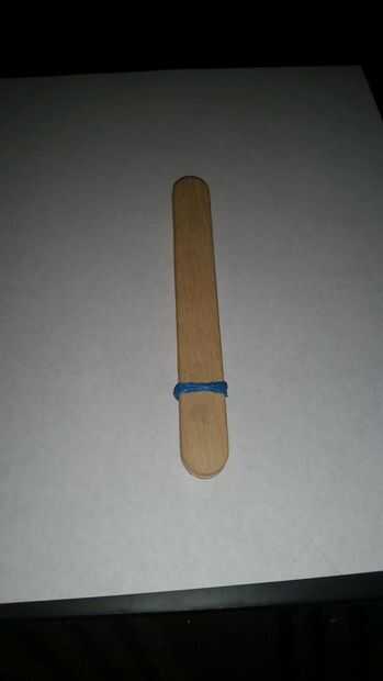 Pila de todos 4 jumbo palitos uno encima del otro. Se unen los palos juntos con una pequeña banda de goma cerca de 1 pulgada de un extremo de su elección.