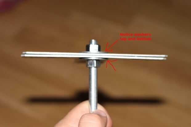 Coloque otra arandela y la tuerca en el perno y apriete.