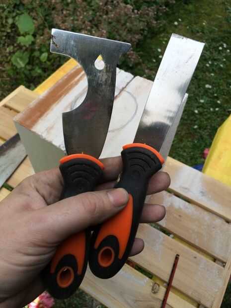 Para las herramientas, todo lo que necesitaba ahí - una sierra de mano antiguo (no utilice su buena Sierra para esto!), tuve algunos raspadores/cuchillos de masilla y una albañilería gran broca (suficientemente grande como para perforar un orificio para aceptar el quemador de la antorcha de gas)