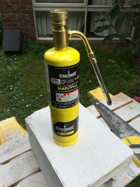 Aquí pueden ver la antorcha que se inserta en el agujero. Tenía el agujero en la parte superior mientras estuve probando, sin embargo cuando lo uso para el tratamiento de calor, a todo se voltea y tiene en la parte inferior.