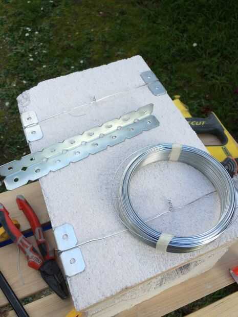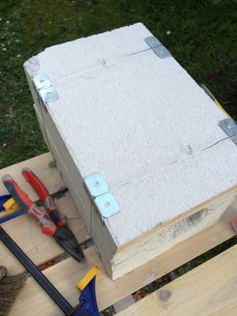 Envolver un par de hebras de alambre alrededor de los bloques para mantenerlos juntos y utilice los soportes de ángulo para proteger las esquinas suaves de los bloques del alambre de cavar en ellos.