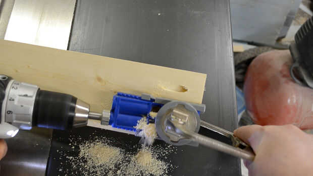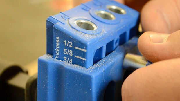 Configurar tu plantilla en base a qué plantilla particular tienes que hacer agujeros de 3/4" material. Perforar un par bolsillo en un extremo de cada una de las mejores piezas y 2 en cada extremo de los 4 de las piezas del faldón.