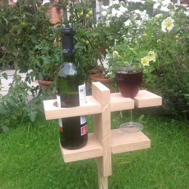 El repunte vino es un "soporte" que soñé una tarde cuando me di cuenta me había vertido demasiado vino en el césped. Puede sostener un vaso de vino bien a lo largo de la botella de vino (mi favorito) o simplemente o copas vino.