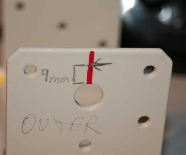 Si uno de los soportes de ángulo de reclinación encima de la otra, recuerda perforar los agujeros del extremo de los ejes a tener en cuenta este hecho. Al final los agujeros perforados apagado a un lado como veis en las fotos siguientes.