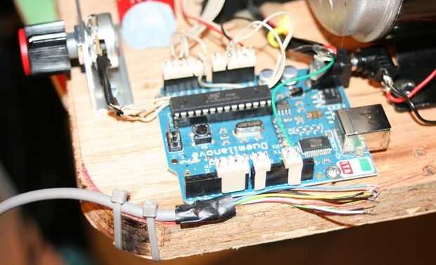 El cable se fija a la cubierta usando bridas simples otra vez para que los cables no están estresados donde se sueldan a los pines de entrada de Arduino. El cable sí mismo es proyectado cable con 6 o más alambres en su interior.