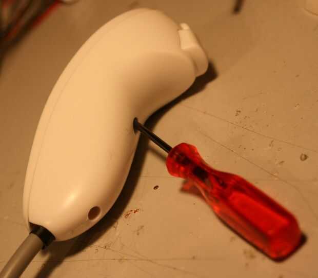 Desmontar Nunchuck. Conseguir una correcto Nintendo uno si se puede como potenciómetro tiene una resistencia más alta de copias chinas más baratas.