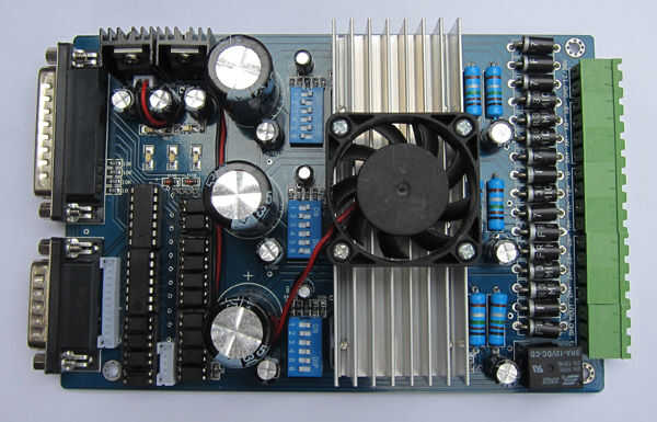 Una vez más eBay al rescate. Compré un kit de 3 motores, un controlador de 3 ejes basado en el controlador de motor paso a paso de Toshiba TB6560 IC y una fuente de alimentación. Busca "3 ejes NEMA23" en eBay debe llevar el mismo kit de un número de vendedor. Fui con uni.supply. El costo para la fuente de alimentación, motores y controlador fue £142 ($222 o €176).