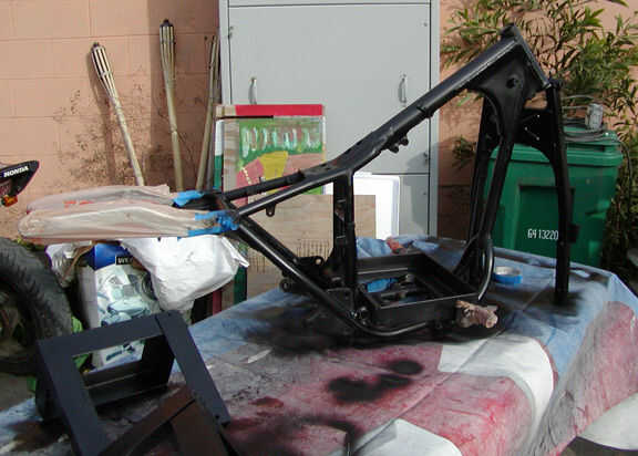 Máscara de cualquier bit de cromo y limpiar el metal una vez más. Utilizar un spray de pintura anticorrosiva y el marco de la capa ligeramente con múltiples capas de pintura. Permita que cada capa se seque entre aplicaciones.