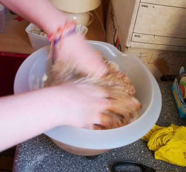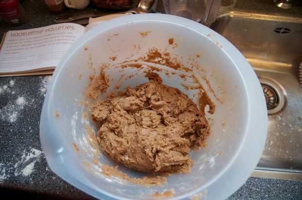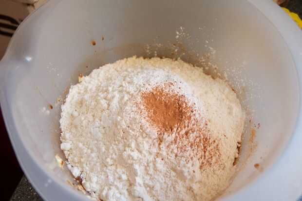 ponga el azúcar, canela, clavo de olor y el agua en el recipiente. poner la harina y el polvo de hornear con él y impaste hasta tener una masa agradable (si usted piensa que la masa es pegajosa a pones unos cuatro más en o si usted piensa que su demasiado seco puede poner algo más de agua pero sólo con pequeños pedacitos) Cuando esté listo colocas la masa en la nevera durante una hora.