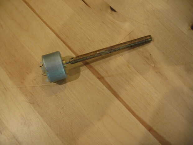 El motor está conectado a la lata por un enfrentamiento por lo que debemos hacer un agujero en un extremo del enfrentamiento sólo lo suficientemente grande como para tomar el eje del motor. Un taladro de columna esto haría mucho más fácil, pero he conseguido razonablemente por el ojo. Una vez perforado, poner la barra en el motor y girar para comprobar que es razonablemente cierto.
