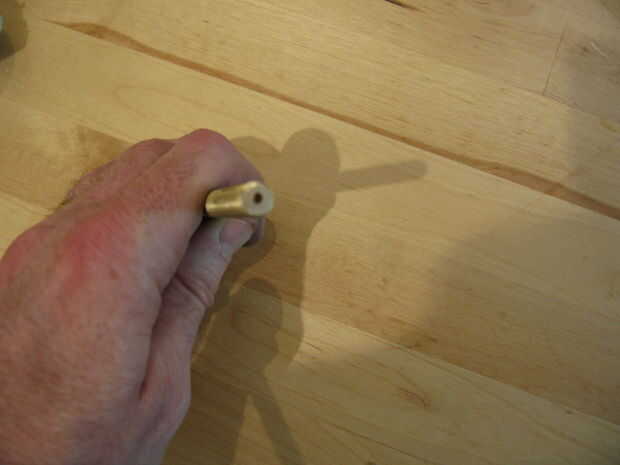 Mientras se la barrena, agregue un agujero en el otro extremo apenas más pequeño que su acero perno/tornillo de la máquina listo para el siguiente paso.
