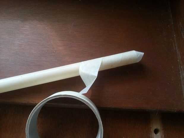 -Comience por wraping la cinta de papel alrededor del tubo plástico (esta parte no se muestra en el video), mira el video de los pasos.