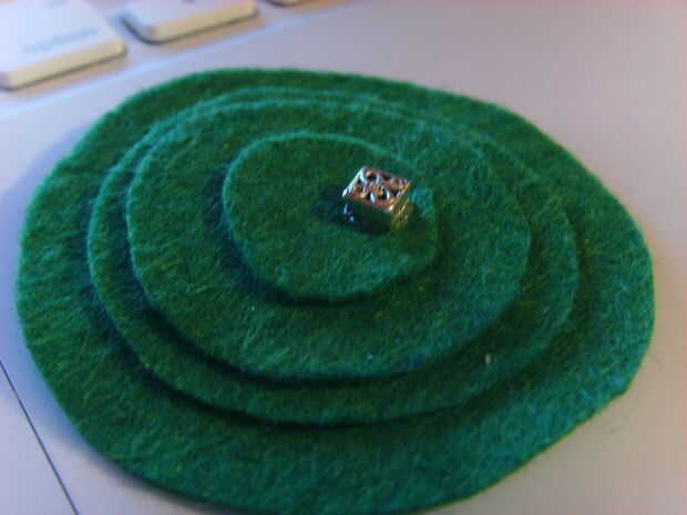 4. pegue el cordón en el centro de la pieza de fieltro arriba (uno más pequeño).