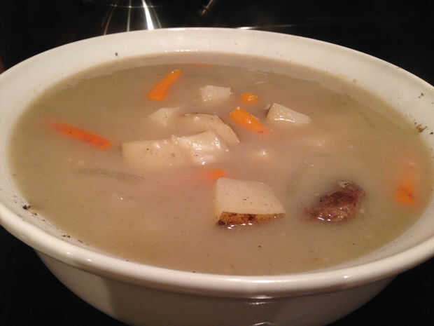 Una vez que su stock es espesado a tu gusto, combinar los ingredientes y cocer a fuego lento unos minutos (no más de cinco). Que es terminado, servir para arriba! Por supuesto será caliente, así que ten cuidado.