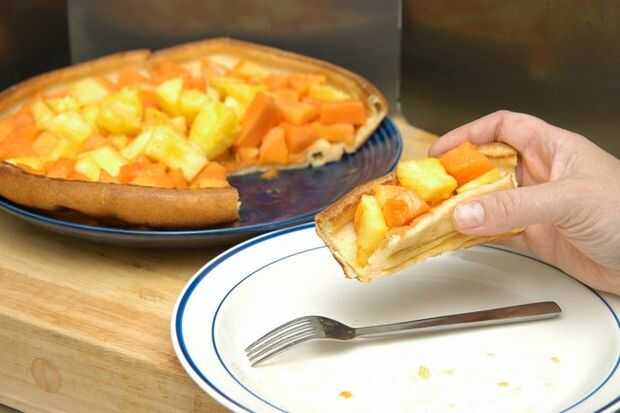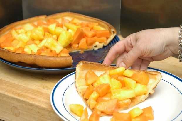 Si lo desea puede tamizar azúcar impalpable por encima de dulzura extra. De cualquier manera, moteados de servir mientras esté aún caliente del horno con la fruta en el centro de la crepe.