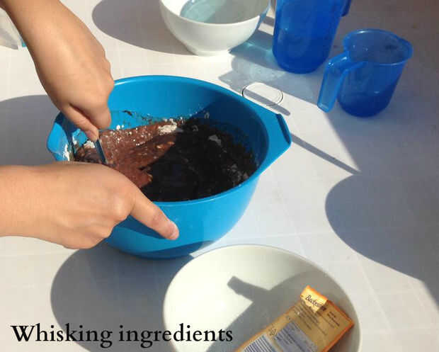 El siguiente paso después de que usted vierte todos los ingredientes juntos es batir con barba, o cuchara de madera dependiendo de su preferencia.