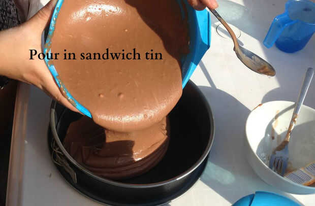 Después de la mezcla de la torta es completamente mezclado y suave, vierta la masa en la bandeja de sandwich ya engrasado.