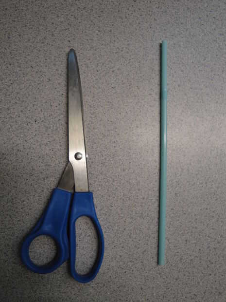 Para hacer su sostenedor del bolso de té, usted necesitará una pajita flexible y un par de tijeras (del tipo que son afilados en la punta).