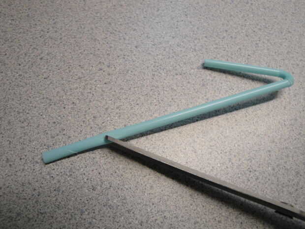 a partir de aproximadamente una pulgada por encima del extremo inferior (largo) de la paja, hacer un corte diagonal en el lado de la paja. Asegúrese de cortar no más profunda que la "línea central" de la paja. Repetir el corte a intervalos de una pulgada, otro dos o tres veces.