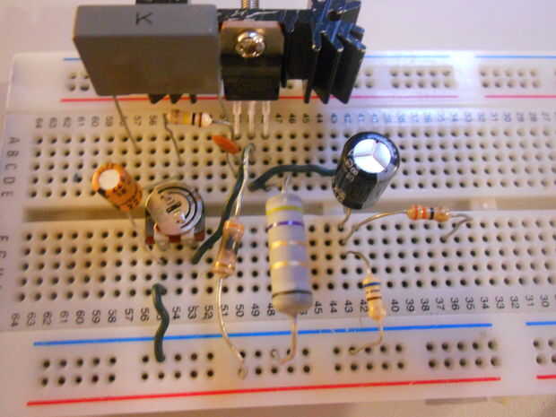 Ahora al añadir el condensador de salida, resistor limitador de salida y tire hacia abajo de la resistencia.