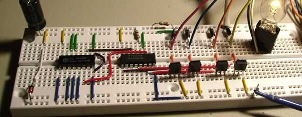 Pero yo sugeriría para aquellos de ustedes que no están familiarizados con los circuitos para hacer en un tablero de pan (ver fotos). De esta forma usted puede fácilmente corregir cualquier error y probar cosas diferentes.