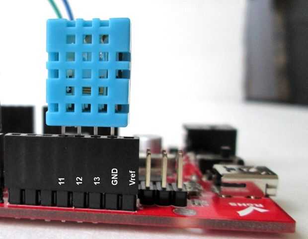 Para guardar los cables de puente y le dan un aspecto aseado, las cuatro clavijas de la DHT11 sensor se inserta directamente en el derecho femenino cabeceras de Arduino Uno del tablero que el pin 4 (GND) de DHT11 va a la tierra pin (pin segunda de arriba a la derecha) de la cabecera de Arduino. Con este arreglo, los pines 1 (VCC), 2 (datos) y 3 (NC) de DHT11 se conectarán a los pines de I/O digitales de Arduino 11, 12 y 13, respectivamente. El DHT11 consume 2.5mA actual a lo más durante la operación. Por lo tanto, puede ser alimentado directamente por el perno de la entrada-salida de Arduino 11 estableciendo a lógica alta durante la operación. El pin 12 del Arduino se utiliza para leer la salida del sensor.