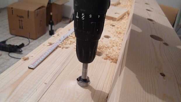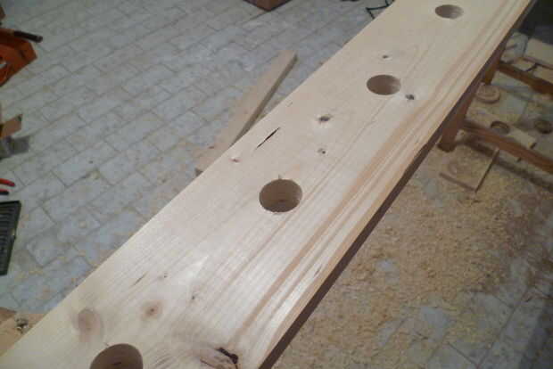 Antes de taladrar los agujeros, cortar los listones de la altura deseada. Comienza con el agujero de centrado y seguir con otro...