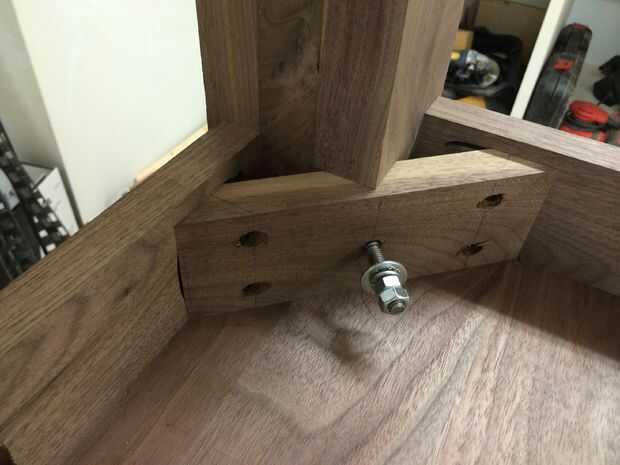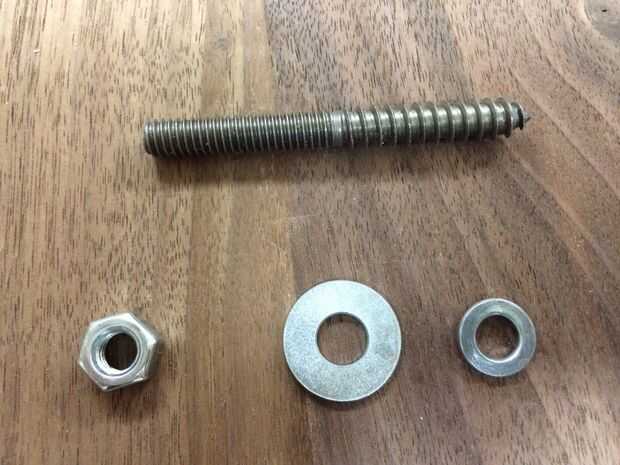 Para el refuerzo de la pierna, uso 5/16 tornillo echado a un lado doble que se puede en almacén de hardware local.