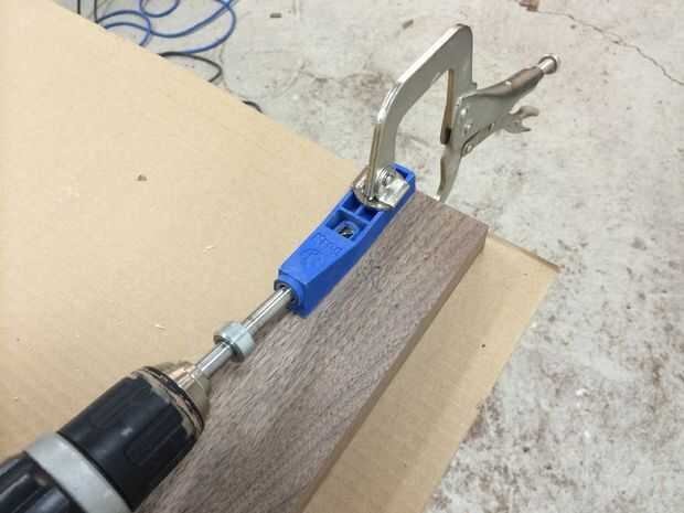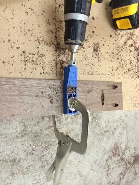 Taladro tornillos de bolsillo con la guía del lado de las piernas y en el lado de la mesa (cada 4" a 5").