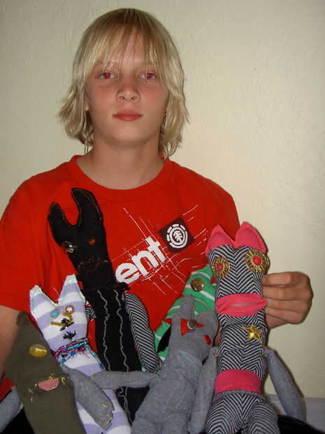 un calcetín de la rodilla alta relleno botones buenas tijeras aguja e hilo o máquina de coser arte pegamento o pistola de pegamento caliente izquierda sobre arte / materiales para más detalle de costura