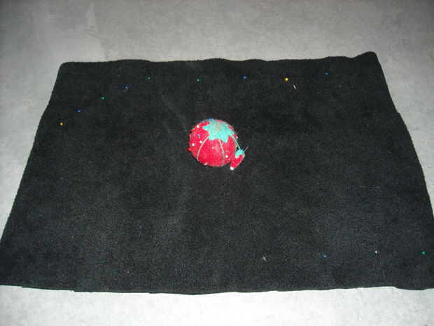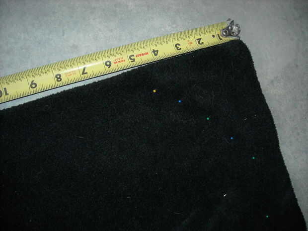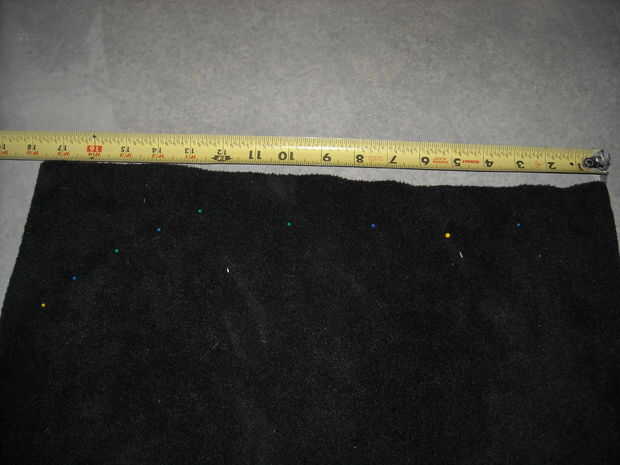 En el lado derecho, pin de aproximadamente un pie por el lado, entonces empezar a arquear más profundamente en la tela, hasta que esté más o menos 5 pulgadas de. Desea hacerlo en una curva.
