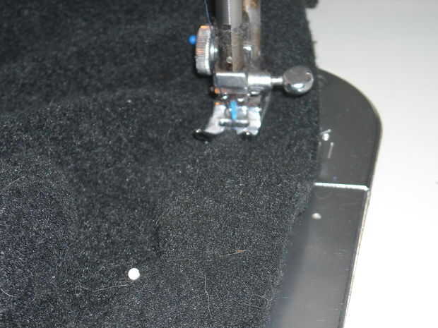 Coser el laminado sobre parte tan cerca como sea posible en el interior de la tela. Es necesario dejar un bonito túnel abierto para que pueda tirar la cadena del calzado a través de él más adelante.