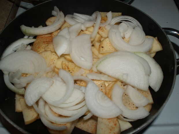 Otra vez, un patrón similar a las patatas; trate de conseguir que en posición plana en la parte superior de las patatas.
