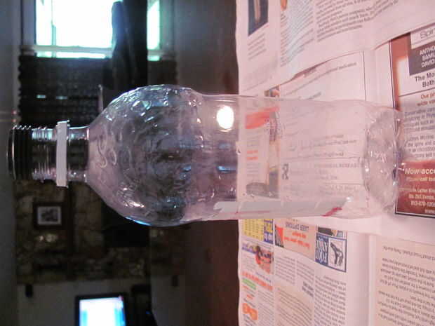 Materiales: -botella -cinta -agua -Bomba de aire -Tijeras -Pegamento (no puede ser pegamento caliente o pegamento de la escuela) -Pintura en aerosol opcional -Espuma opcional