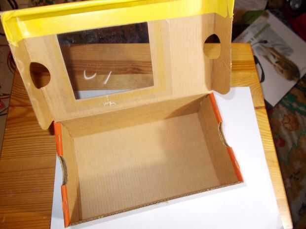 Ahora vamos a preparar la caja grande. Es para evitar situaciones inesperadas y para estabilizar el motor. Los lados más largos (en algún lugar en el centro) hacen dos agujeros largos (uno para cada lado). El ancho del agujero debe ser widther un poco (pero no demasiado ancho) que el ancho de la duela y el agujero debe ser un poco más alto que la altura del peso y de la pequeña caja y tablón de madera. En la parte inferior de la caja grande poner el peso y en peso pone su pequeña caja y motor en tablón de madera (como en la última imagen).