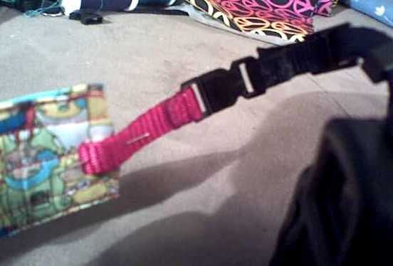 Esta es la parte que requiere más planificación en todo el proyecto. Esto ayuda a tener la cámara frente a ti, para alinear correctamente las cosas. Curva de la correa sea la zona acolchada en el interior. Si la correa que tiene un patrón, asegúrese de que es el lado derecho hacia arriba. Ahora, tomar los dos conectores que hiciste y pines a los extremos de la correa. Asegúrese de que están alineados por lo que puede conectar a la cámara una vez que están conectados - coincidencia de masculino a femenino, y ambas curvas de la forma correcta. Una vez que las tienes puestas en su lugar, les cose abajo, ya sea a mano o máquina.