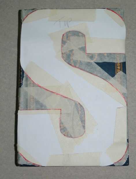 El método más sencillo es grabar la letra en con cinta de enmascarar ya que usted está cortando la cinta cuando usted corta la carta. Los residuos tendrá la cinta en él y la letra tiene el libro blanco. He esbozado en rojo para que sea más fácil ver a través de la cinta adhesiva.