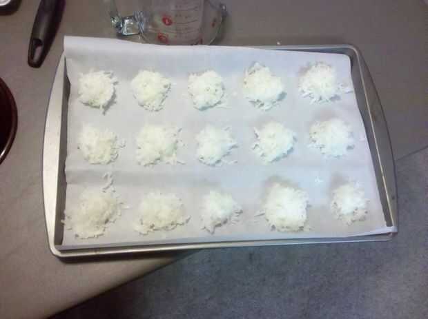 6) Coloque las galletas en el horno de 350 grados durante 10 minutos. Esto es tiempo suficiente para cocer los macarrones, y todavía salen bastante blanco. Si quieres un poco más de color, usted puede Agregar hasta 5 minutos para conseguir el look tostado, pero no les horneo mucho más largo que el.