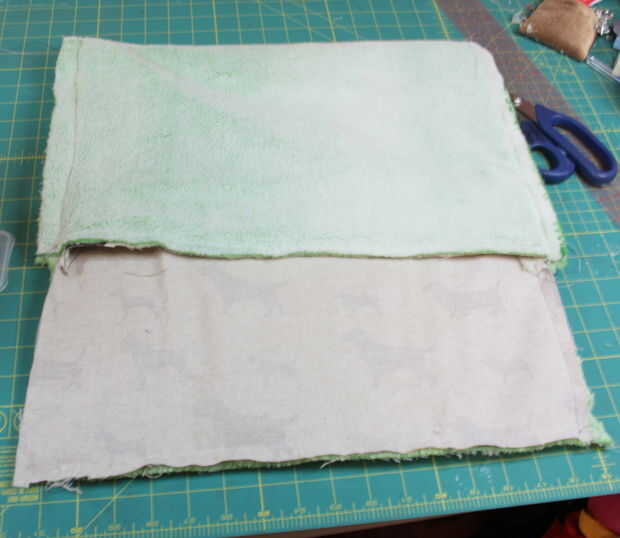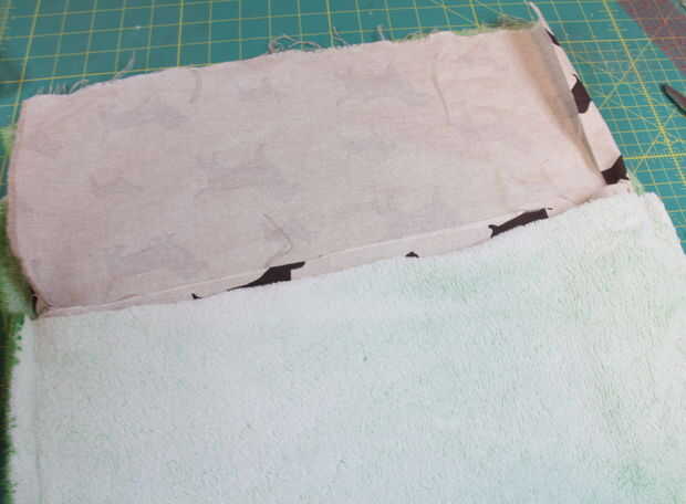 Una vez que había hecho esto con ambos materiales, I el revés del forro y coloca alrededor de la tela exterior. Con esta construcción cosí hasta los bordes restantes dejando un pequeño orificio para que pudiera extraer las piezas boca.