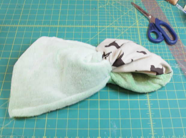 Utilizando el espacio dejado en la costura, tire el material a través de para que es el lado correcto de cada uno. Después de hacer esto, coser la brecha cerrada (yo usé la máquina porque soy perezoso).