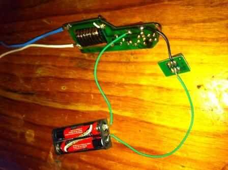 A continuación instale el soporte de batería de AAA a los cables de batería - Asegúrese de que usted ponga el cable positivo de la placa de circuito para la termiinal positiva en el portabaterías - hacer lo mismo con los negativos. Sé que esto parece obvio pero es un mistakke fácil de hacer.