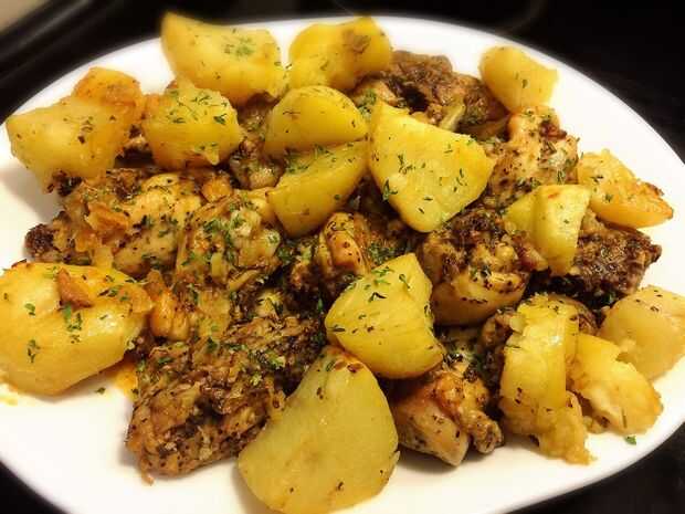 Esta es una receta de horneado de pollo estilo griego. La mayoría de las recetas convocatoria sólo jugo de limón, pero la adición de jugo de naranja hace la diferencia. Esta es una de las recetas favoritas de mi familia y estoy seguro que te va a enc