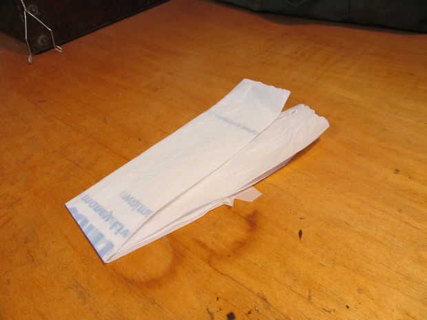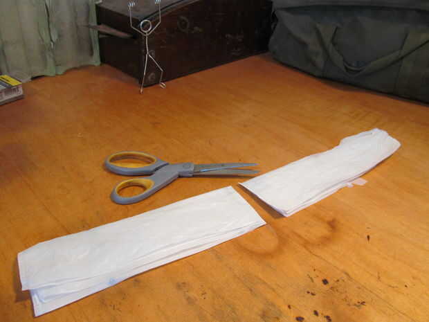 El paracaídas tomar una bolsa de plástico y recostarla. Doble la bolsa en medio de maneras largas dos veces. A continuación doblar la bolsa por la mitad para encontrar el centro. Utilice un par de tijeras para cortar la bolsa por la mitad. Usted debe terminar con una mitad de la bolsa como un paracaídas y el otro como una tapa de tanque de alta moda.