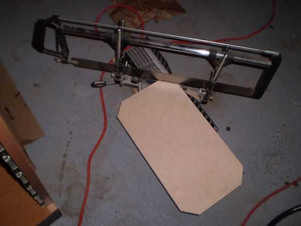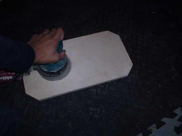 Antes de empezar a hacer el tablero trasero debe encontrar un pedazo de madera que está cerca de veinte pulgadas de ancho y diez pulgadas de alto. Cortar las esquinas en 45 grados ángulo usa un inglete vio pero podría utilizar cualquier Sierra que le gusta. Los rincones que sólo cortó ahora deben tener tres ángulos planos. La Junta de la arena por lo que es suave.