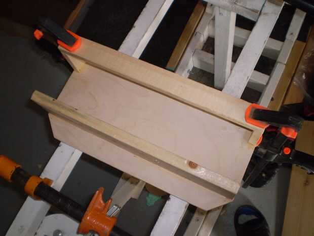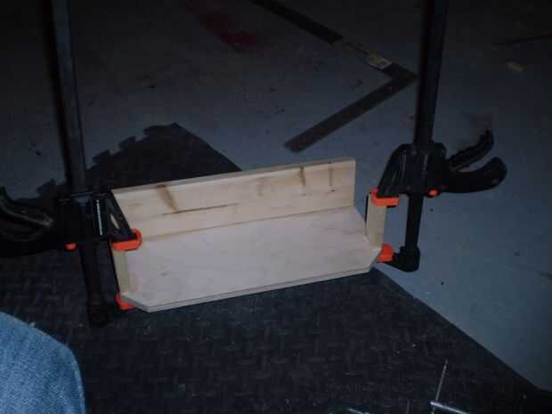 Haz tu cola, ponerlo en los pedazos de tres pulgadas y colocarlos en las esquinas recién cortadas y aplicar suficiente presión de sujeción. Después de veinticuatro horas retire las abrazaderas y poner pegamento en los extremos que se pega para arriba. Vuelva a colocar el tablero largo de 20 pulgadas por lo que establece en las piezas de tres pulgadas. Después de veinticuatro horas retire las abrazaderas.